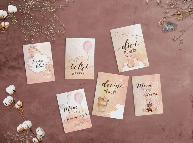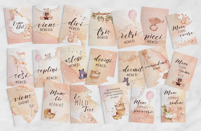 Mēnešu kartiņas lieliski noderēs, gan fotogrāfējot mazuli pirmos 12 mēnešus, gan veidojot mazuļa pirmo fotoalbumu!