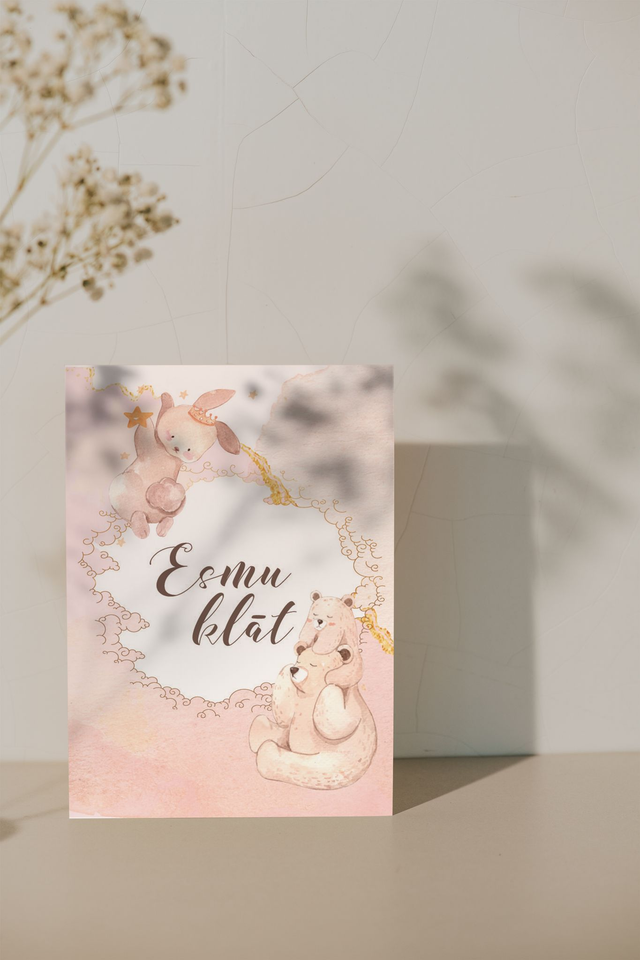 Kartiņu dizains ir saskaņots ar "Pieneņpūka - soft pink" mazuļa pirmās grāmatiņas iekšlapu dizainu.