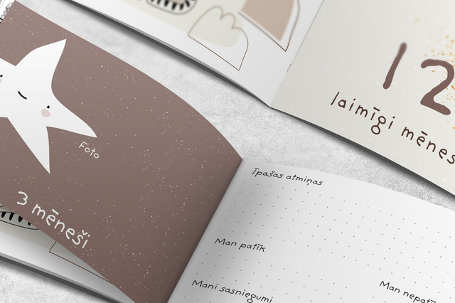 70 lapaspusēs iespējams iemūžināt dažādus mazuļa pirmā dzīves gada svarīgākos mirkļus, kā arī jauno vecāku iespaidus, iejūtoties mammas un tēta lomā. Tajā ir vieta gan sonogrammai, gan standarta izmēra fotogrāfijām. Daļa grāmatas veltīta gan gaidību laikam, gan pirmajiem 12 mēnešiem, kā arī pirmajai dzimšanas dienai + atvērums viesu vēlējumiem.