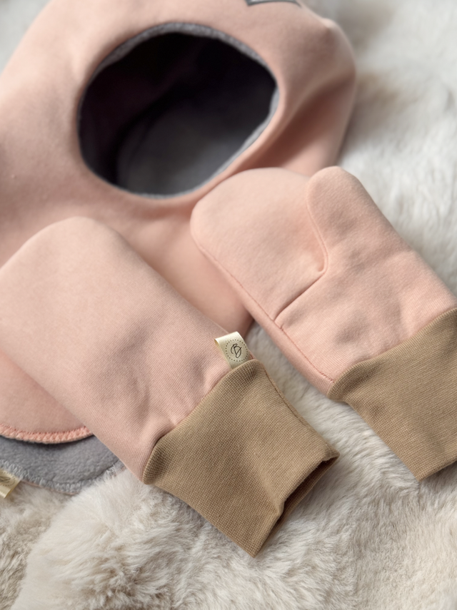 Materiāls cepurei un cimdiem: 100% siltināta kokvilna, flīsa odere